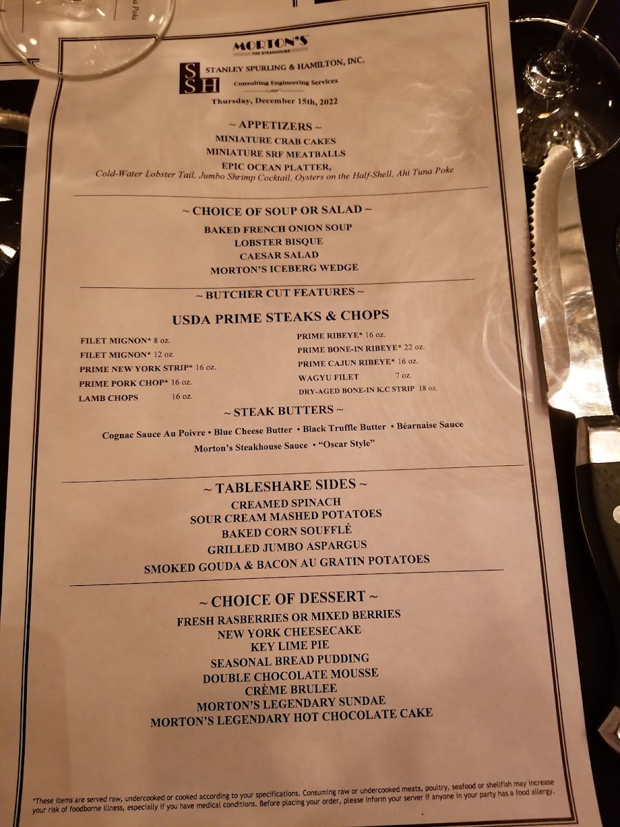 Every dish is crafted with care, ensuring that each bite ignites the senses. The Loaded Baked Potato and warm bread served with luxury butter are highlights that cannot be overlooked. With an elegant ambiance and attentive service, your dining experience at Morton's promises to be unforgettable, making it the perfect destination for both celebrations and everyday indulgence.
